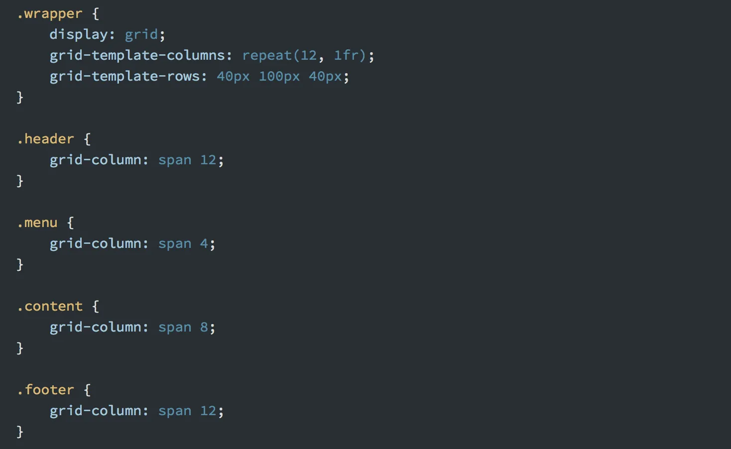 No entanto, enquanto o exemplo Bootstrap não exige que se adicione CSS, o exemplo CSS Grid, claro, exige isso. Especificamente, é preciso adicionar:
